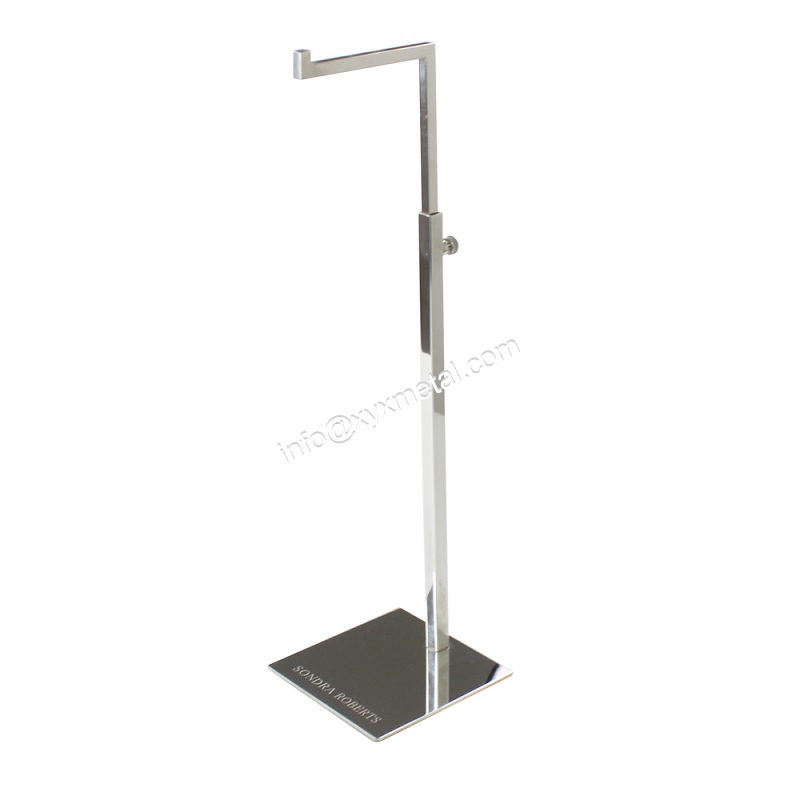 The height of this stainless steel bag display stand is adjustable from 14" to 24", perfect for displaying all of your handbags, hats, scarves & scarf!