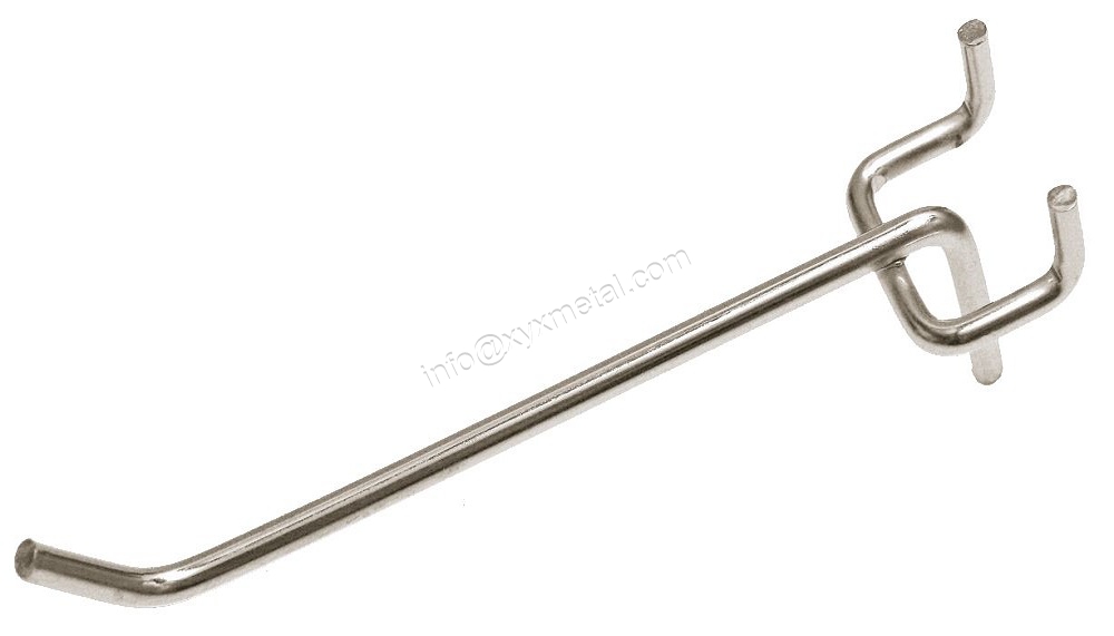 XYX METAL offers a variety of options for pegbard display hooks. It can be chrome plated or galvanzied in sliver color or powder coated in customized color.
