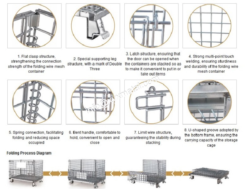 wire container or collapsible container.  They are made of steel wire and U steel channel with galvanized finishing. C-1 Wire mesh container is large wire mesh container offers these benefits and more with its 40” x 48” x 36” frame, 3300lbs. handling load and 2” x 2” mesh pattern.
