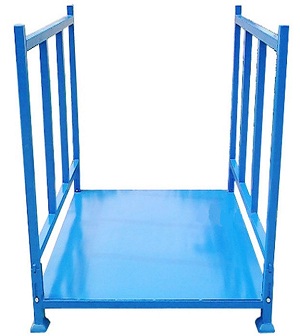 A stillage is like a pallet or skid but with a cage or sides or some form of support specifically tailored to the material it is intended to carry. Some are designed to be stackable.